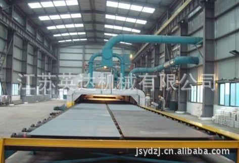 鋼板預(yù)處理線工藝是指鋼材在加工前(即原材料狀態(tài))進(jìn)行表面拋丸除銹并涂上一層保護(hù)底漆的加工工藝。鋼材經(jīng)過預(yù)處理可以提高機(jī)械產(chǎn)品和金屬構(gòu)件的抗腐蝕能力,提高鋼板的抗疲勞性能,延長其使用壽命;同時還可以優(yōu)化鋼材表面工藝制作狀態(tài),有利于數(shù)控切割機(jī)下料和精密落料。此外,由于鋼材在加工前其形狀比較規(guī)則,有利于機(jī)械除銹和自動化噴漆,因此采用鋼材預(yù)處理可大大提高清理工作的效率,減輕清理工作的勞動強(qiáng)度和對環(huán)境的污染。正因為如此,鋼板預(yù)處理工藝不僅在工藝發(fā)達(dá)國家已推廣應(yīng)用,而且在國內(nèi)引起眾多行業(yè)的日益重視,不少企業(yè)已把鋼材預(yù)處工藝提到企業(yè)技術(shù)改造的議事日程。